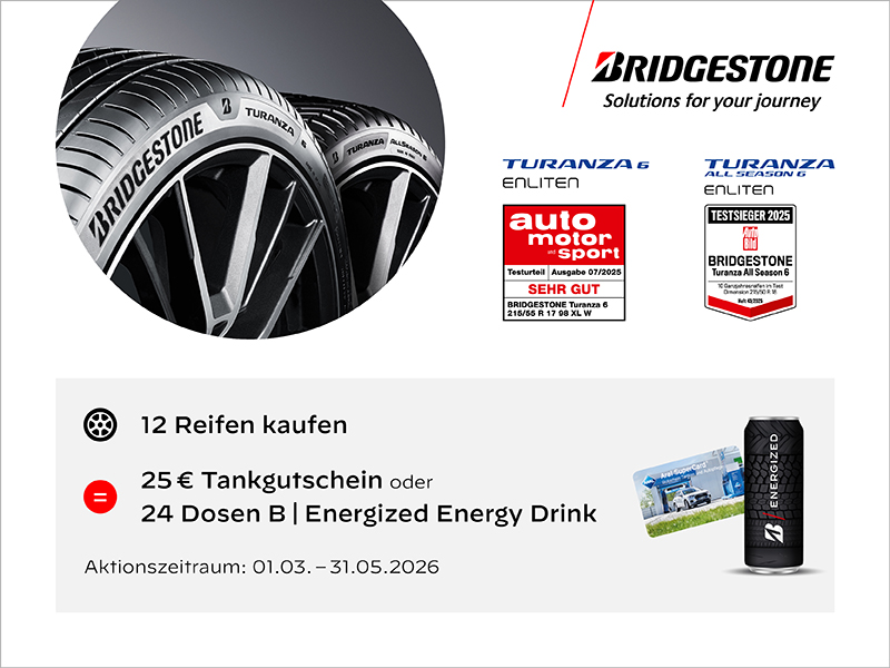 WAS: Kaufen Sie mindestens 12 Bridgestone-Reifen (Sommer/Ganzjahr)